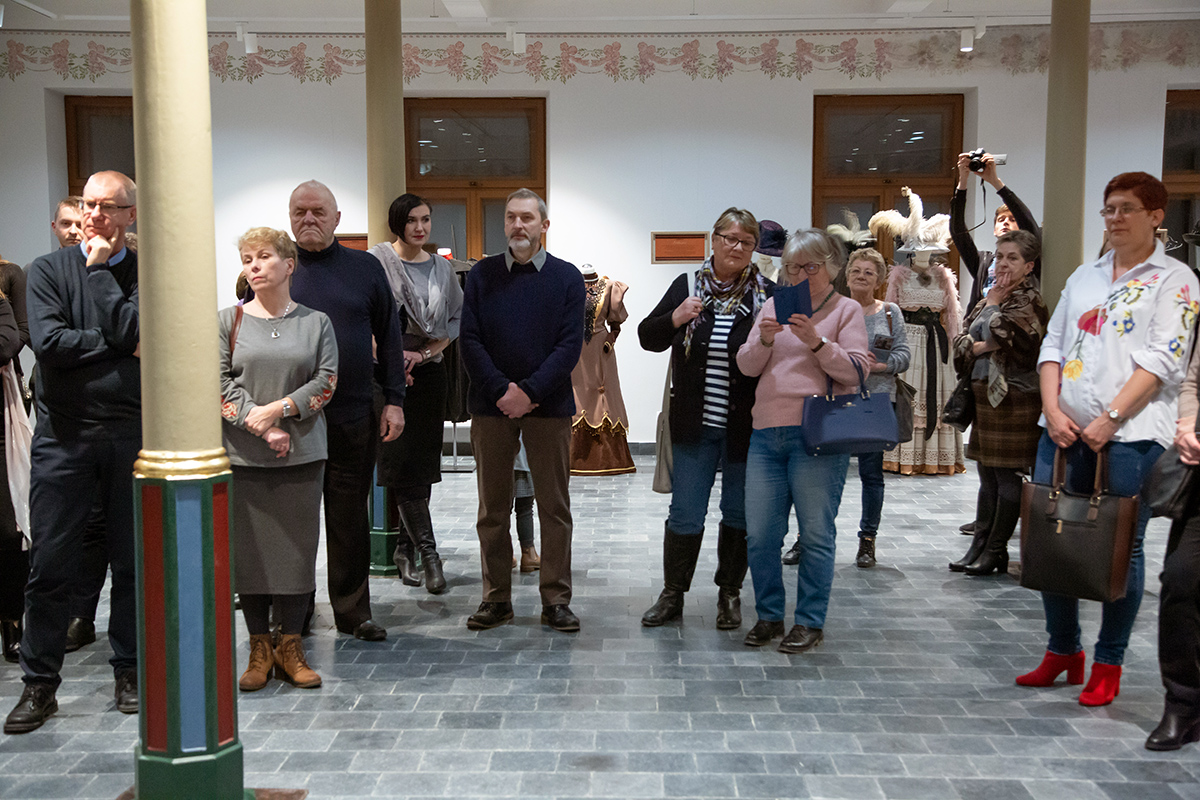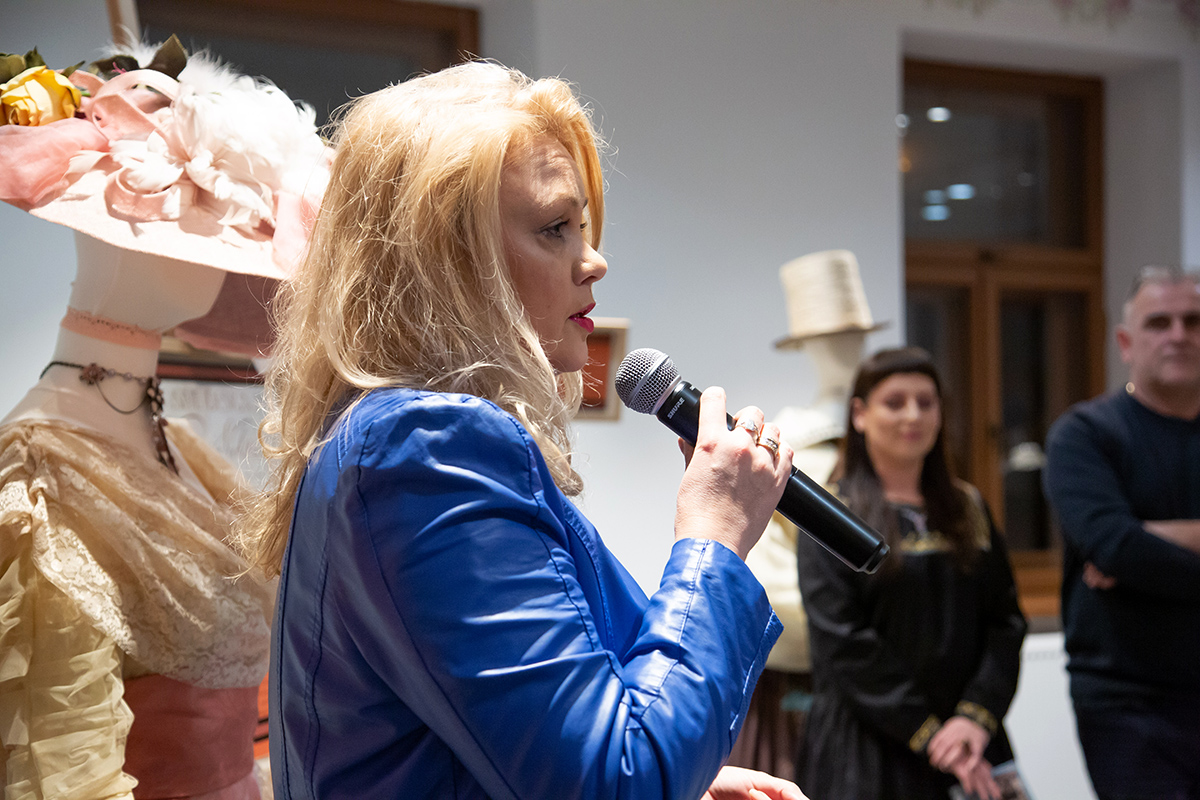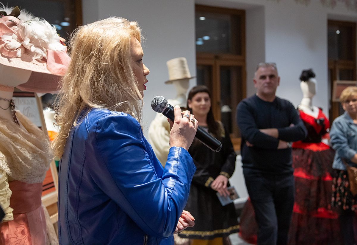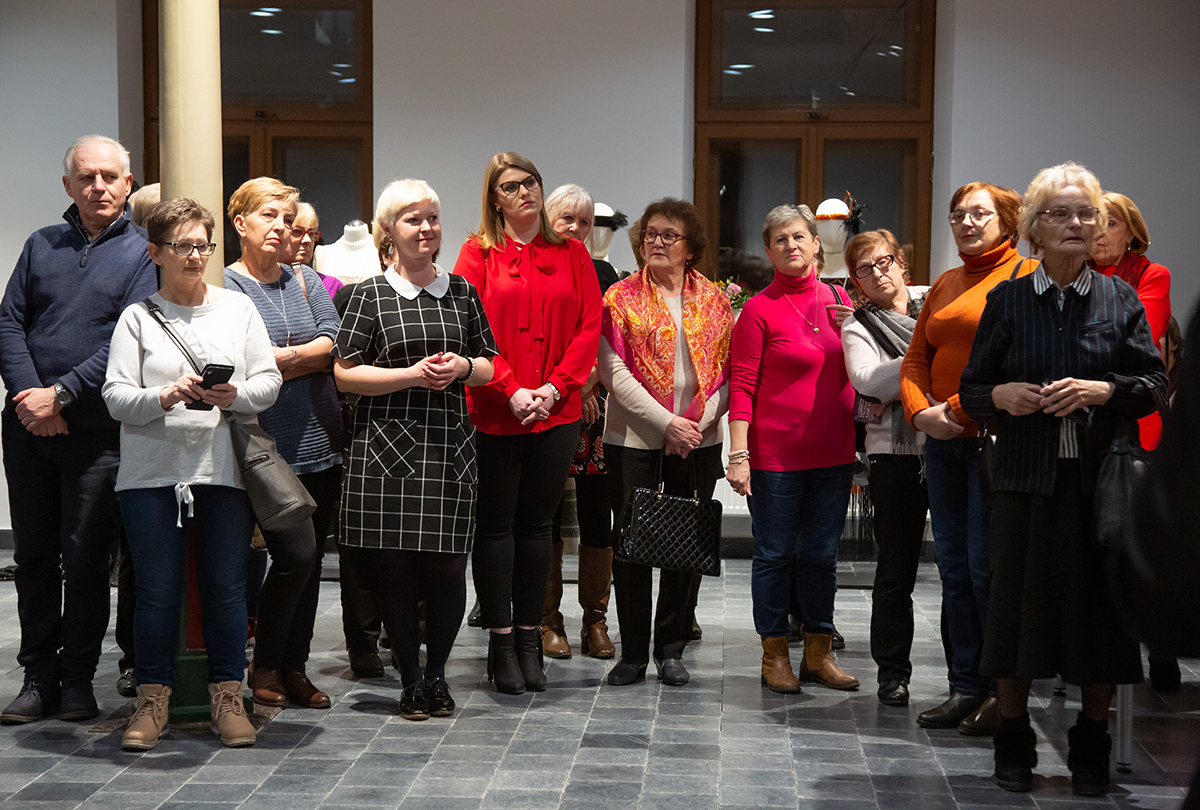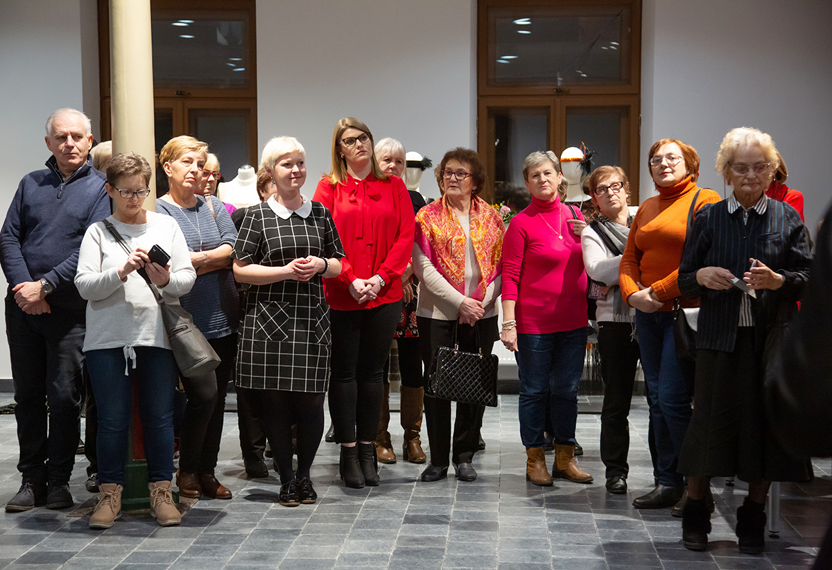 Małgorzata Retkowska opowiadała o tym, jak powstały prezentowane stroje. Wielkim zaskoczeniem dla uczestników wernisażu była informacja, że te imponujące kostiumy zostały uszyte głównie z tkanin odpadowych i elementów starych ubrań, które na strychach przeleżały nawet kilkadziesiąt lat.