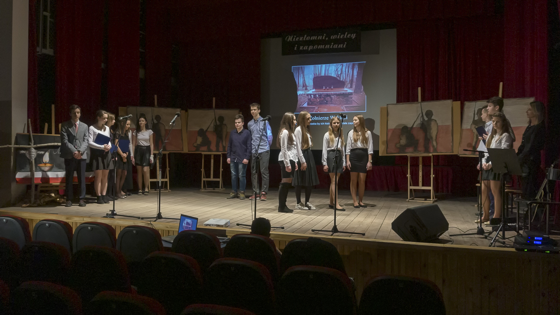 Koncert w Miejskim Domu Kultury zgromadził liczną publiczność, składającą się z uczniów makowskich szkół. Na ekranie za sceną przewijały się zdjęcia partyzantów, wykonawcy na scenie przypominali bolesną historię Polski czasów II wojny światowej i okresu powojennego. Wszystko to przeplatane było patriotycznymi piosenkami w perfekcyjnym wykonaniu. Publiczność słuchała i oglądała w skupieniu.