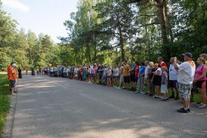 Przed siedemnastą wszyscy zatrzymali się w Ulaskach. Tam ustawili się w dwóch szeregach wzdłuż ‘Tysiąclatki”. Pamięć o Powstaniu Warszawskim uczcili gwizdkami funkcyjnych, minutą ciszy i modlitwą za poległych w obronie Ojczyzny.