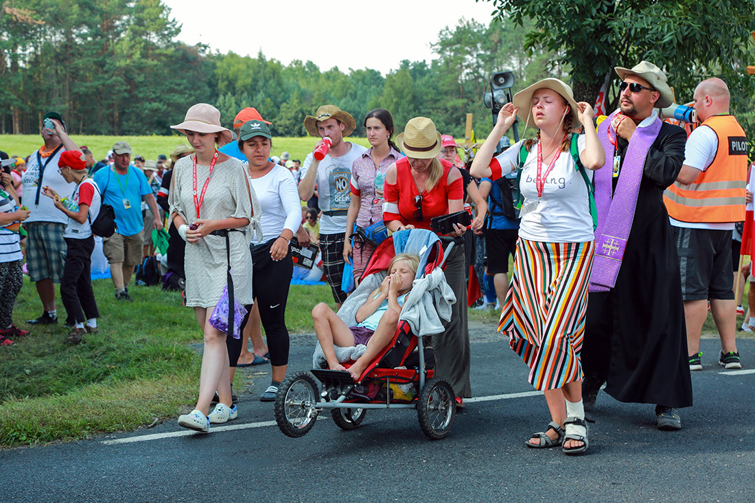 Uczestnicy pielgrzymki wyglądali na zmęczonych – upał i lepiący się do podeszw asfalt dawały im się we znaki. Mimo zmęczenia zachowywali jednak pogodę ducha. To w większości młodzi ludzie, mieszkańcy Suwałk, Gołdapi, Augustowa, Ełku i Piszu.