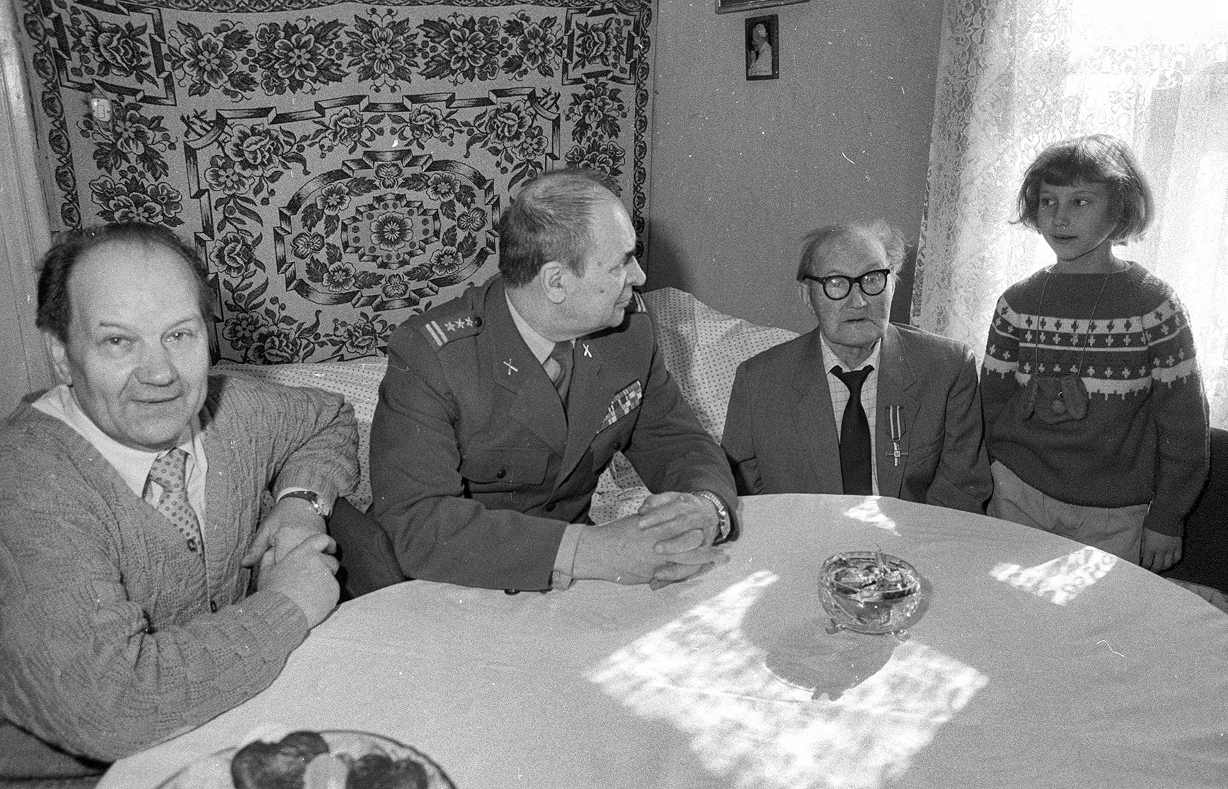 Powrót do domu. Rodzinna wizyta u fotografa w Krasnosielcu. Stoi w mundurze, pierwszy z prawej. Pośrodku rodzice z uroczystymi minami, siostry, brat. Fotografii nie robiło się tak jak teraz, codziennie. Musiał być po temu ważny powód. Szczęśliwy powrót z wojny był jednym z nich.