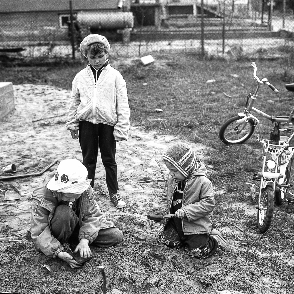 Za oknem była piękna pogoda. Przed domami, ani na osiedlowym placyku nie widać było jednak dzieci. Wróciłem do domu i sięgnąłem po stare negatywy z lat 80. Moim oczom ukazał się świat podwórkowych zabaw pokolenia moich dzieci. Siedzieć w domu było nudno. Komputerów jeszcze nie było. Telewizja nadawała na dwóch kanałach – TVP1 oraz TVP2. Dzieci nie były preferowanymi odbiorcami, miały niewiele „swoich” programów. Siedzenie w domu było nudne.