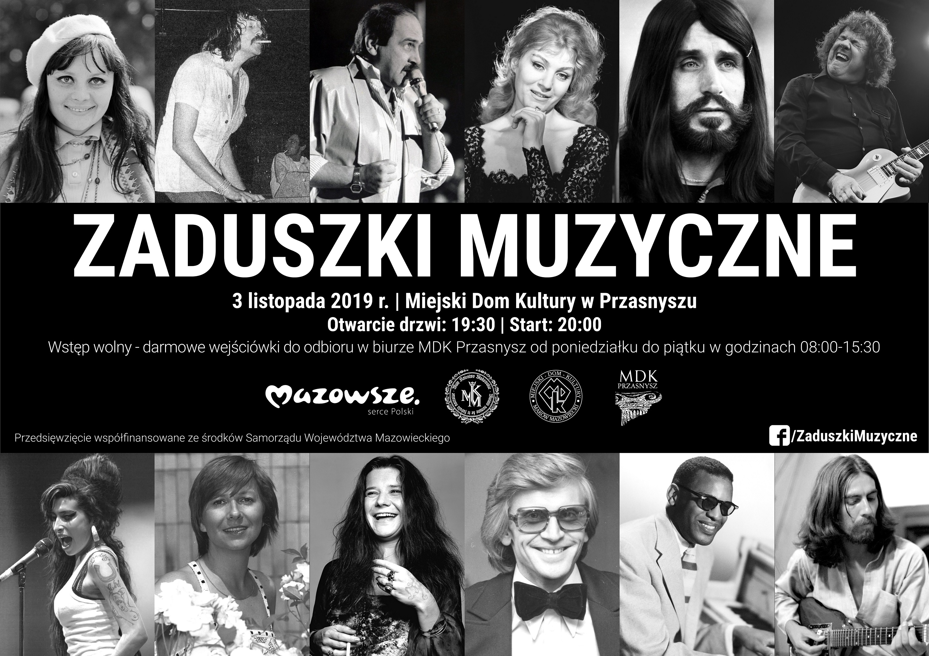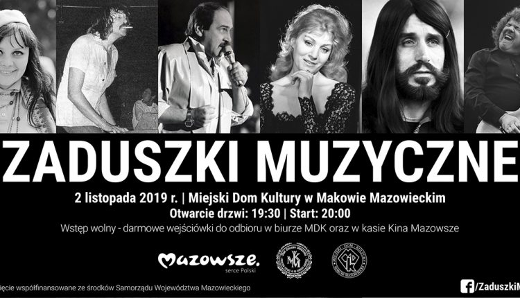 Tradycja Zaduszek Muzycznych w Makowie Mazowieckim ma już 15 lat. Po raz kolejny kilkunastu muzyków z okolic Makowa Mazowieckiego, Przasnysza, Pułtuska i Ostrołęki przypomni utwory muzyczne, które na stałe zapisały się w historii polskiej i światowej kultury. W tym roku wspominać będziemy między innymi Agnieszkę Osiecką, Raya Charlesa, Adę Rusowicz, Zbigniewa Wodeckiego czy też Janis Joplin.