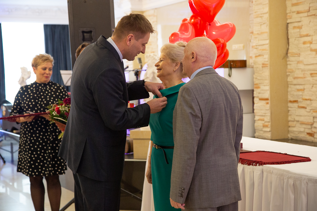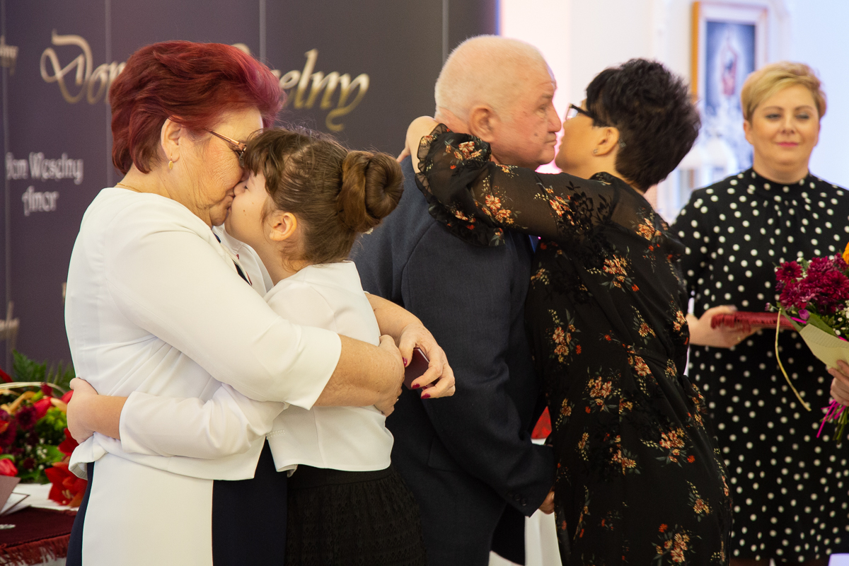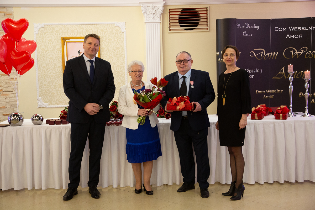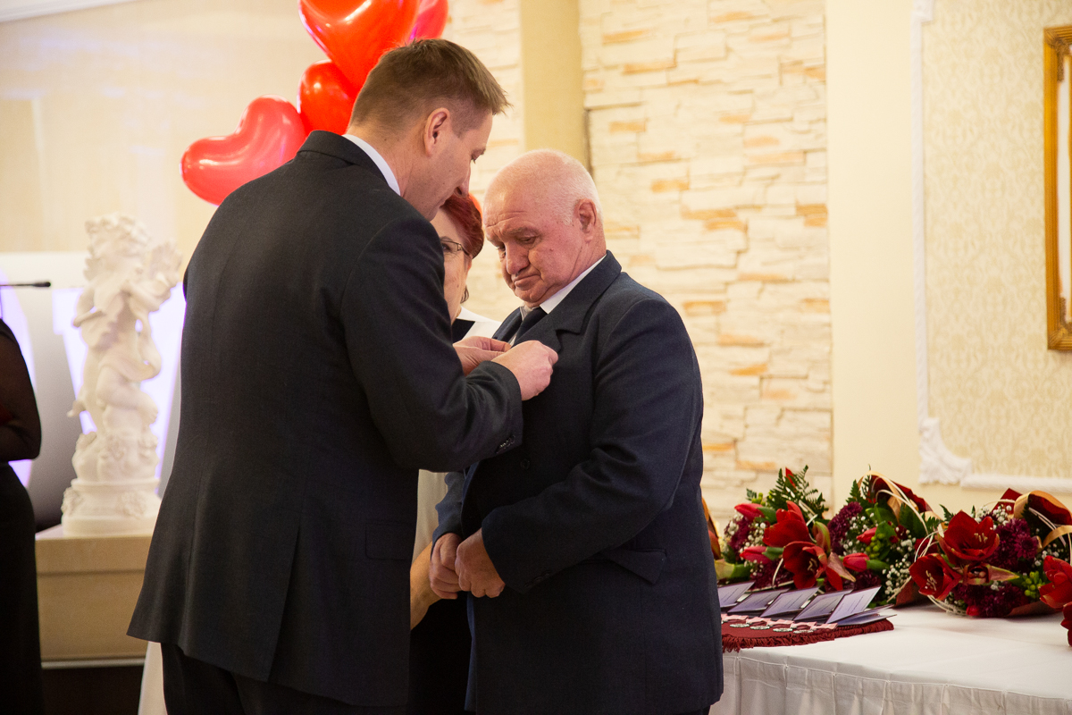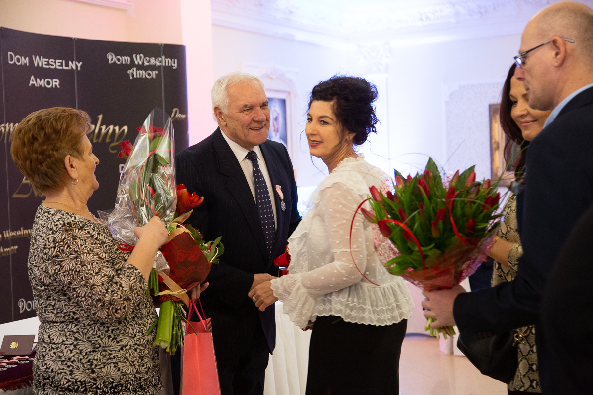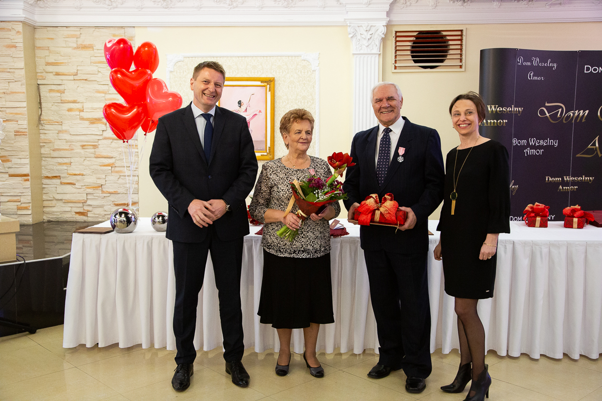 „… i nie opuszczę Cię aż do śmierci – tak brzmią słowa przysięgi małżeńskiej. Niełatwo jest wyrazić słowami wielki podziw i szacunek dla wspólnej pięćdziesięcioletniej drogi dwojga ludzi, którzy mimo trudności, różnicy charakterów idą razem przez życie. Niekiedy czule objęci, niekiedy milczący podczas cichych dni, zawsze jednak razem, dając świadectwo, że miłość przezwycięża wszystkie przeszkody i trudności. Z całego serca gratuluję Państwu wzajemnego szacunku, odpowiedzialności, cierpliwości, umiejętności wybaczania. Jesteście Państwo dla mojego pokolenia wspaniałym przykładem na to, iż miłość nie jest pustym słowem, że naprawdę warto razem iść przez życie, wspólnie cieszyć się sukcesami i razem pokonywać trudności. W tak uroczystym dla nas i zebranych tak licznie rodzin dniu, proszę przyjąć ode mnie słowa najwyższego uznania oraz życzenia zdrowia, osobistego szczęścia, pogody ducha i wielu dalszych wspólnie przeżytych dni. Wszystkiego dobrego”.