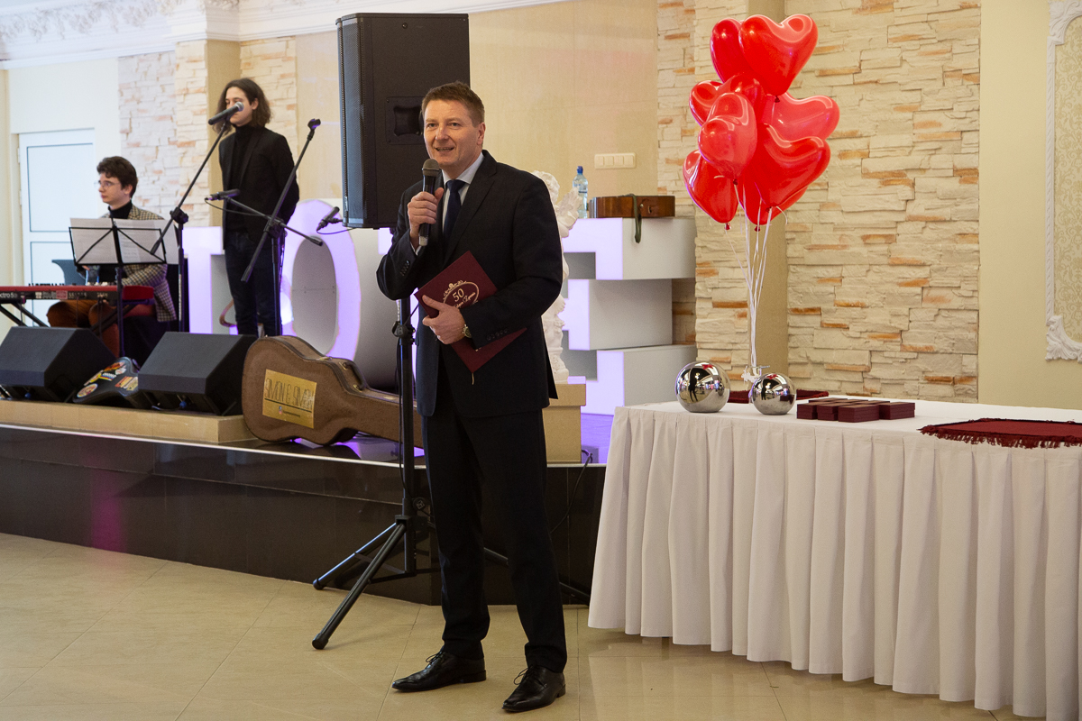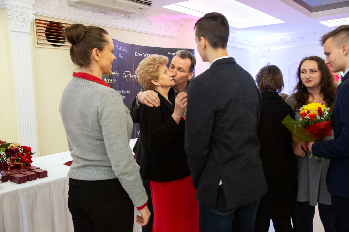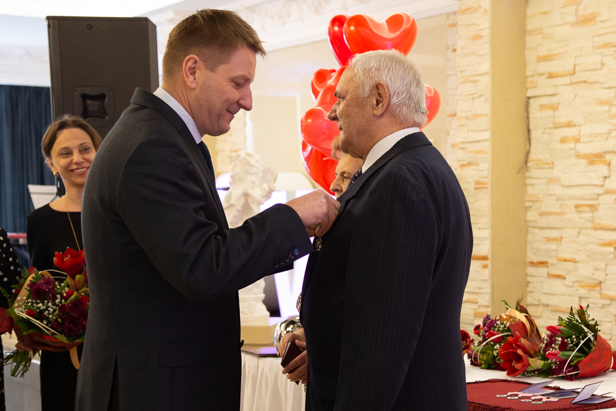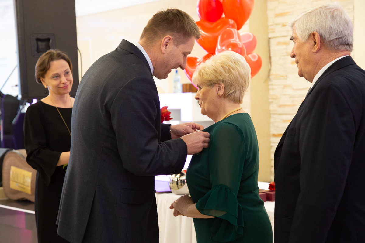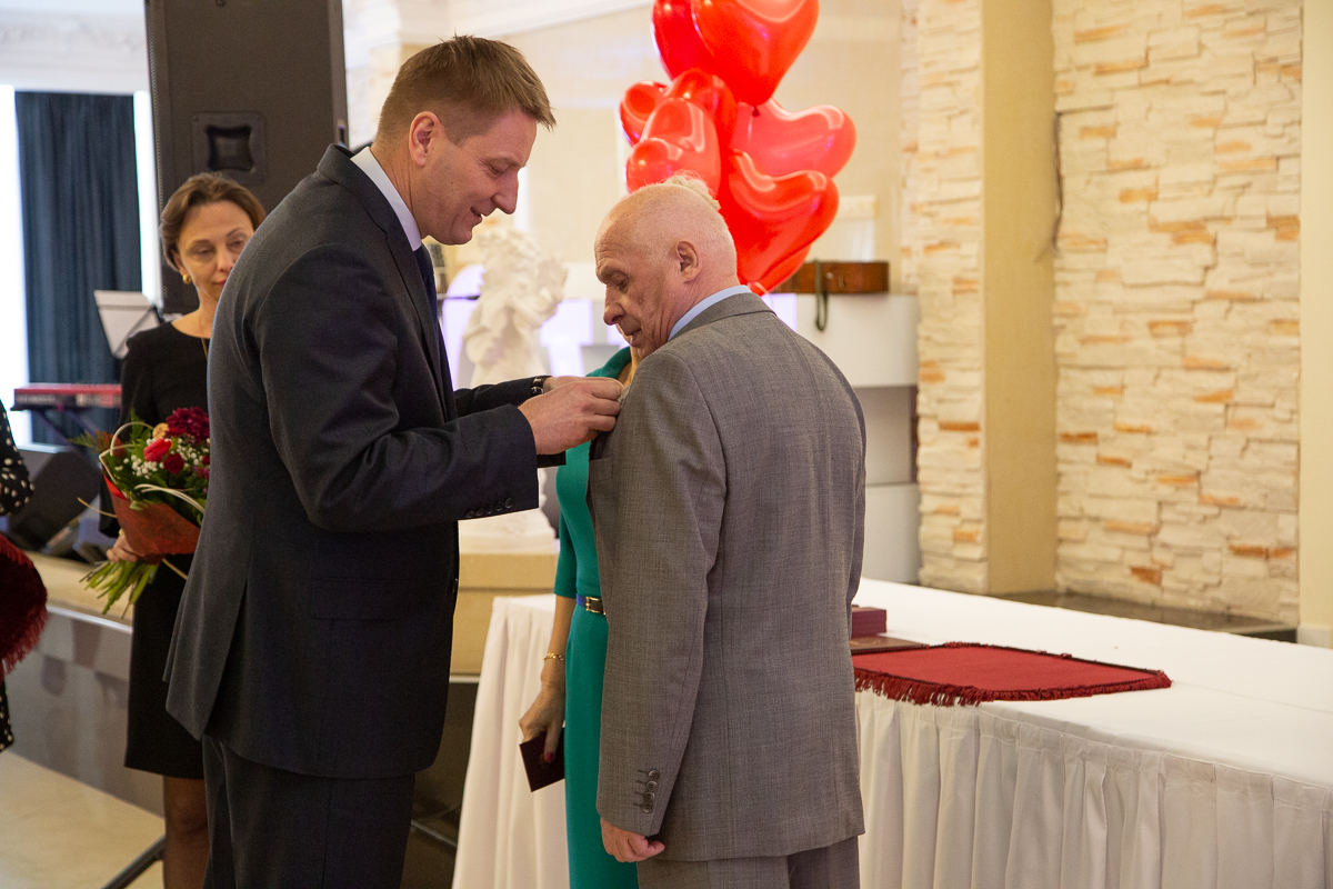 „… i nie opuszczę Cię aż do śmierci – tak brzmią słowa przysięgi małżeńskiej. Niełatwo jest wyrazić słowami wielki podziw i szacunek dla wspólnej pięćdziesięcioletniej drogi dwojga ludzi, którzy mimo trudności, różnicy charakterów idą razem przez życie. Niekiedy czule objęci, niekiedy milczący podczas cichych dni, zawsze jednak razem, dając świadectwo, że miłość przezwycięża wszystkie przeszkody i trudności. Z całego serca gratuluję Państwu wzajemnego szacunku, odpowiedzialności, cierpliwości, umiejętności wybaczania. Jesteście Państwo dla mojego pokolenia wspaniałym przykładem na to, iż miłość nie jest pustym słowem, że naprawdę warto razem iść przez życie, wspólnie cieszyć się sukcesami i razem pokonywać trudności. W tak uroczystym dla nas i zebranych tak licznie rodzin dniu, proszę przyjąć ode mnie słowa najwyższego uznania oraz życzenia zdrowia, osobistego szczęścia, pogody ducha i wielu dalszych wspólnie przeżytych dni. Wszystkiego dobrego”.