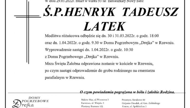 Zmarł Ś.P.HENRYK TADEUSZ LATEK