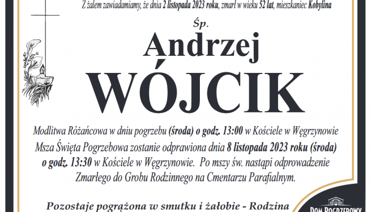 Z żalem zawiadamiamy, że dnia 2 listopada 2023 roku, zmarł w wieku 52 lat, mieszkaniec Kobylina