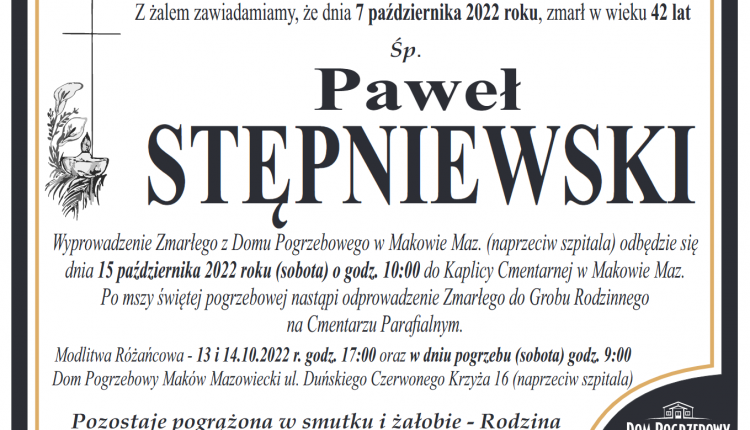 Z żalem zawiadamiamy, że dnia 7 października 2022 roku, zmarł w wieku 42 lat
