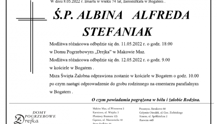 w Domu Pogrzebowym „Drejka” w Makowie Maz.