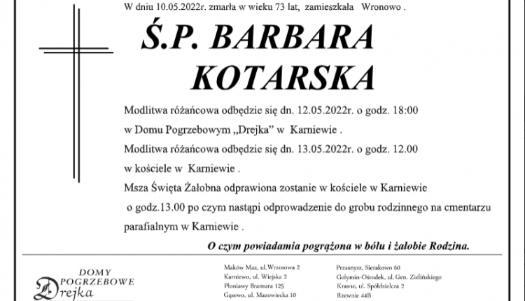 Zmarła ŚP. Barbara Kotarska
