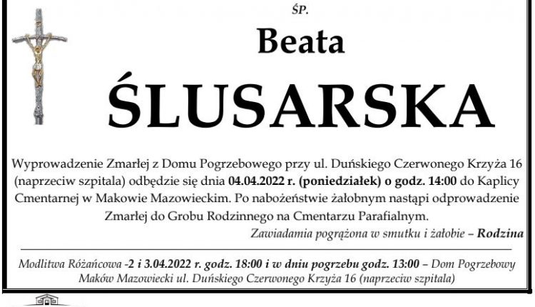 Z głębokim żalem zawiadamiamy, że dnia 1 kwietnia 2022 r. zmarła w wieku 45 lat, mieszkanka Makowa Mazowieckiego