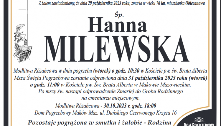 Msza Święta Pogrzebowa zostanie odprawiona dnia 31 października 2023 roku (wtorek)