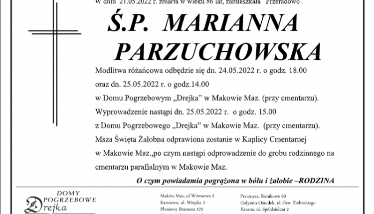 z Domu Pogrzebowego „Drejka” w Makowie Maz. (przy cmentarzu).