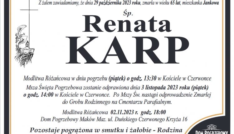Z żalem zawiadamiamy, że dnia 29 października 2023 roku, zmarła w wieku 65 lat, mieszkanka Jankowa