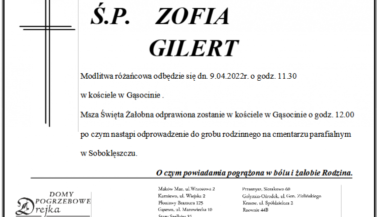 Zmarła Śp. Zofia Gilert