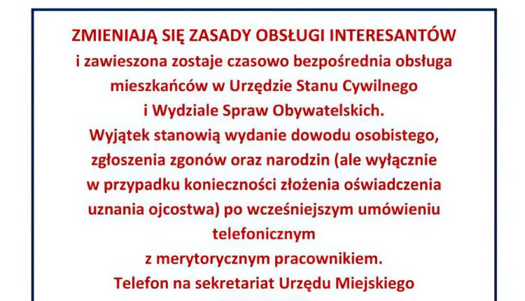 Urząd Stanu Cywilnego i Wydział Spraw Obywatelskich w Makowie Maz. zmieniają zasady obsługi interesantów. Zawieszona zostaje bezpośrednia obsługa interesantów.